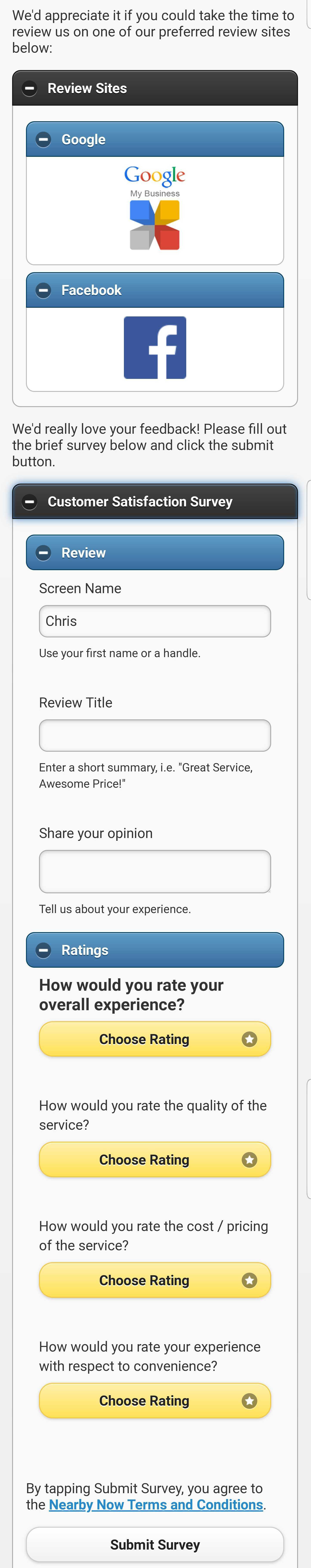 Nearby Now Survey
