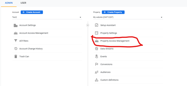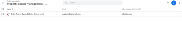 From here a panel will open with a list of accounts that have access to the analytics property.